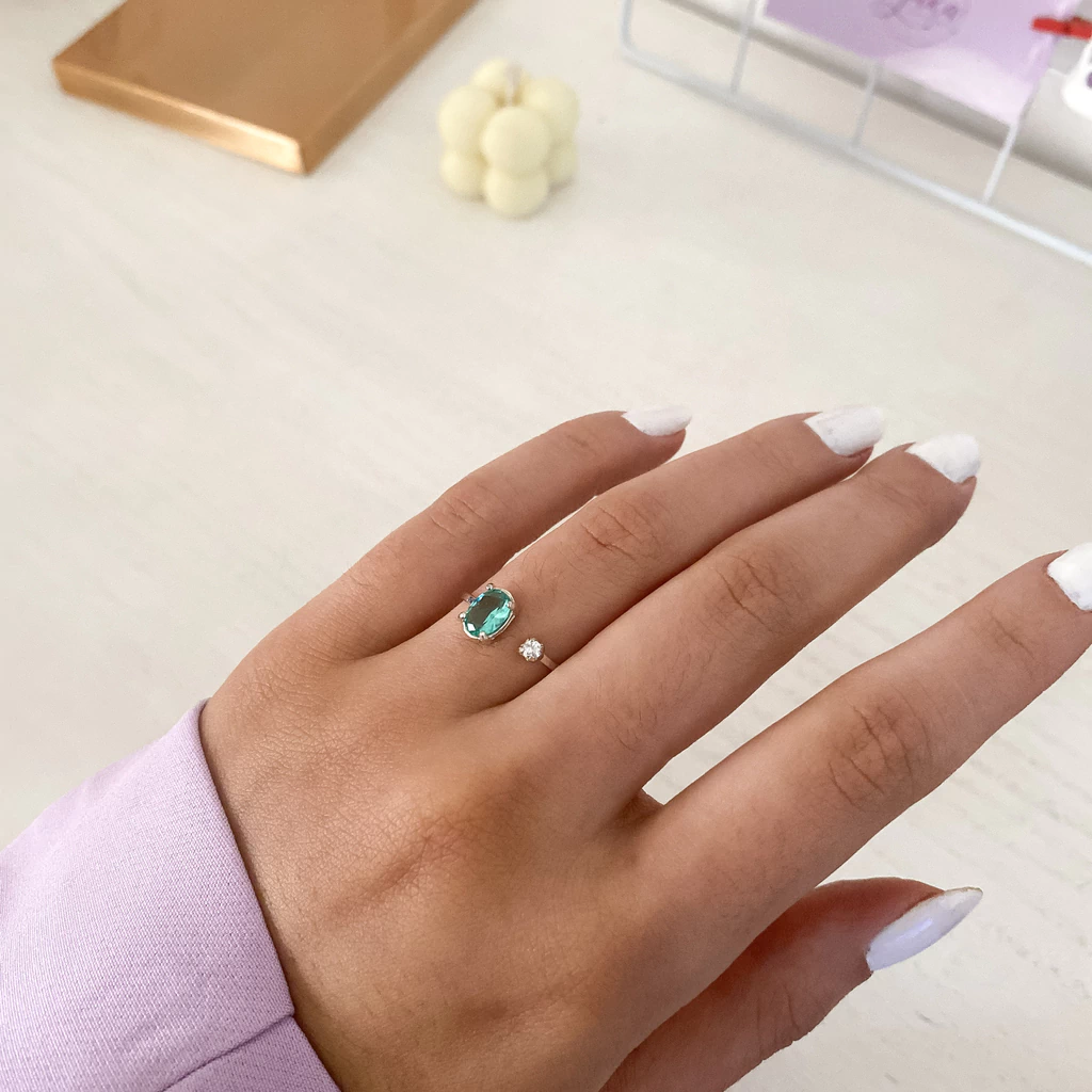 Anel regulável turmalina e cristal é um anel diferente com destaque na pedra de turmalina verde.
