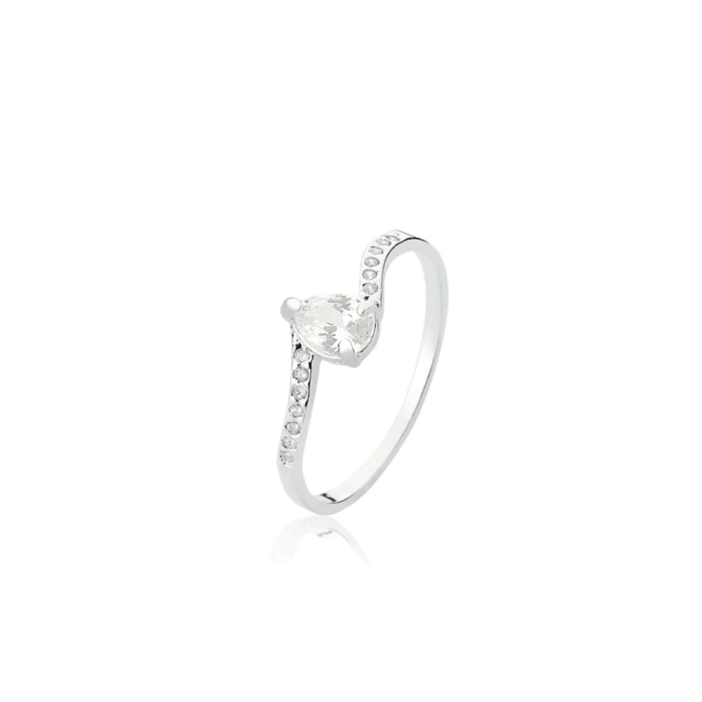 Anel Solitário Itália cravejada de zircônia gota é um anel delicado, romântico e com detalhes cravejadas na lateral
