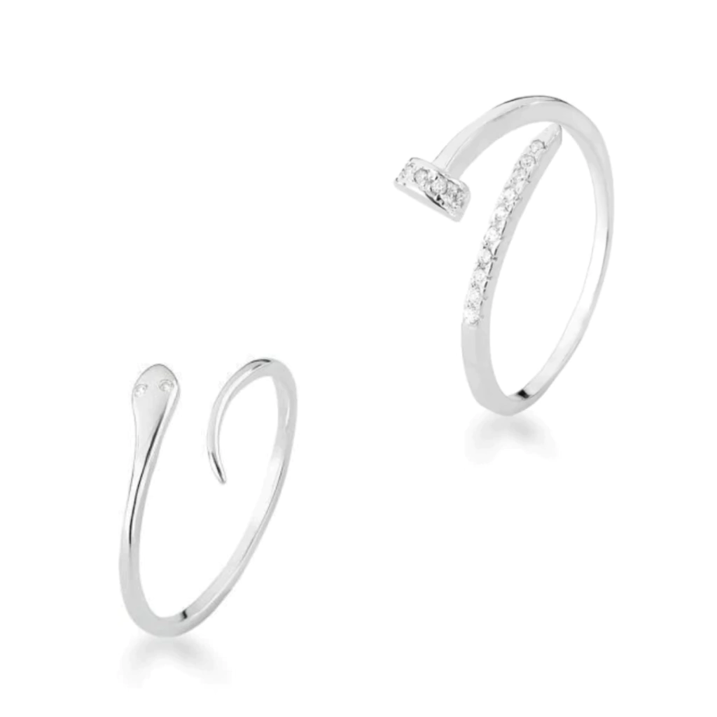 Garanta já o seu Kit 8 Anel Regulável Prego e Snake Prata 925 e eleve seu visual com peças únicas que falam sobre você!